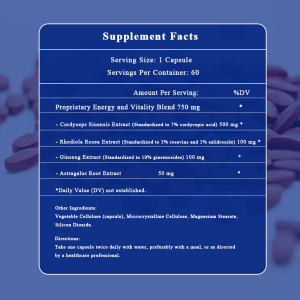 This Cordyceps Sinensis nutritional supplement is designed to support energy levels, enhance physical performance, and promote overall vitality. Cordyceps Sinensis Extract, standardized to 7% cordycepic acid, is known for its ability to boost energy, enhance endurance, and support respiratory function. Rhodiola Rosea and Ginseng Extracts improve physical performance and reduce fatigue. Astragalus Root Extract supports immune function and overall well-being.