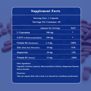 This L-Tryptophan & 5-HTP nutritional supplement is designed to support mood balance, promote restful sleep, and enhance overall well-being. L-Tryptophan and 5-HTP are precursors to serotonin, a neurotransmitter that plays a key role in regulating mood, sleep, and appetite. The addition of Vitamin B6, Magnesium, Zinc, and Vitamin B3 aids in the metabolism of these amino acids and supports nervous system function.