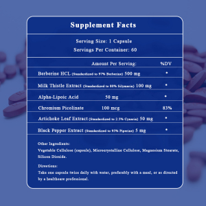 This Berberine nutritional supplement is designed to support metabolic health, enhance liver function, and promote overall well-being. Berberine HCL, derived from natural sources, is known for its ability to support healthy blood sugar levels and improve insulin sensitivity. Milk Thistle Extract and Artichoke Leaf Extract support liver health and detoxification. Alpha-Lipoic Acid provides antioxidant benefits, while Chromium Picolinate helps regulate blood sugar levels. Black Pepper Extract enhances the absorption of active ingredients.