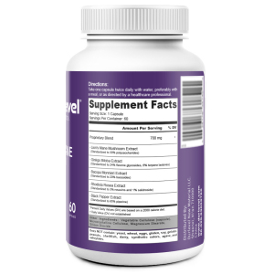 This Lion's Mane nutritional supplement is designed to support cognitive health, enhance memory and focus, and promote overall well-being. Lion's Mane Mushroom Extract, standardized to 30% polysaccharides, is known for its neuroprotective properties and ability to support nerve growth factor (NGF) production. Ginkgo Biloba and Bacopa Monnieri Extracts enhance cognitive function and improve memory. Rhodiola Rosea Extract helps reduce fatigue and support mental clarity. Black Pepper Extract improves the absorption of active ingredients.