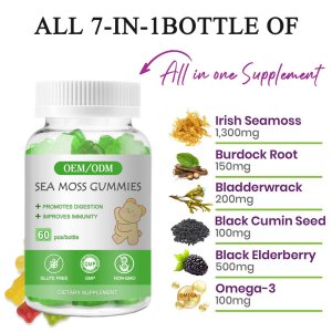 These Sea Moss Gummies combine the power of Irish Seamoss (1,300mg), Black Elderberry (500mg), and Omega 3 to support overall wellness. Enriched with Burdock Root (150mg), Bladderwrack (200mg), and Black Cumin Seed (100mg), this gluten free, non GMO supplement is designed to promote digestion and enhance immunity. Each bottle contains 60 gummies, crafted in a GMP certified facility for quality assurance. Ideal for daily use, these gummies offer a convenient way to incorporate nutrient rich sea moss and antioxidant packed elderberry into your routine, helping to maintain energy levels and overall health.