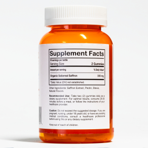 SAFFRON Gummies are a delicious and convenient dietary supplement infused with Organic Satiereal® Saffron, a premium saffron extract known for its potential to support emotional balance and healthy appetite management. Each serving (2 gummies) delivers 300 mg of saffron extract, formulated with natural ingredients like pectin, stevia, and natural flavors for a guilt free experience. Research suggests saffron may help promote a positive mood and reduce occasional cravings when taken consistently. For best results, take two gummies daily, 20 30 minutes before a meal, or as directed by your healthcare provider. This supplement is gluten free and made without artificial additives, making it an ideal choice for those seeking a natural wellness boost. **Note:** These statements have not been evaluated by the FDA. This product is not intended to diagnose, treat, cure, or prevent any disease. Consult your doctor before use if pregnant, nursing, under 18, or managing a medical condition.